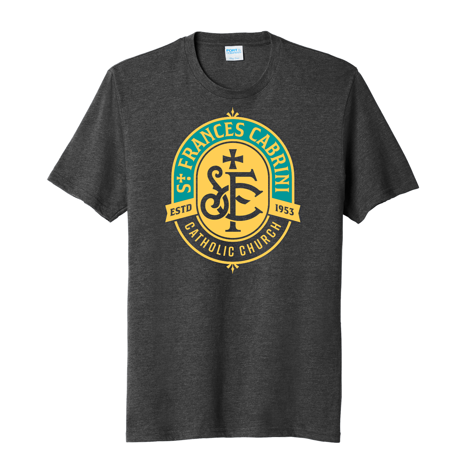 St. Frances Cabrini Catholic Church – Heather Gray Unisex T-Shirt with English Logo