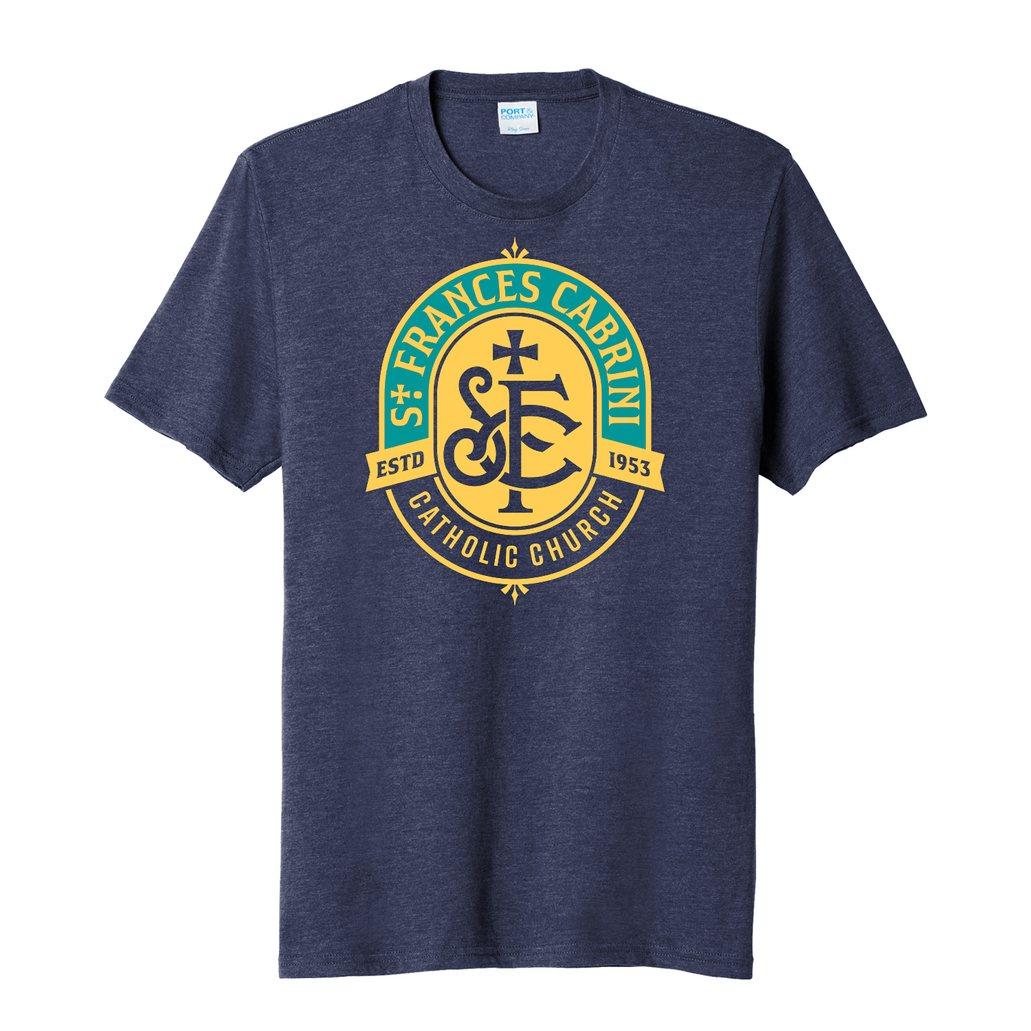 St. Frances Cabrini Catholic Church – Heather Navy Unisex T-Shirt with English Logo