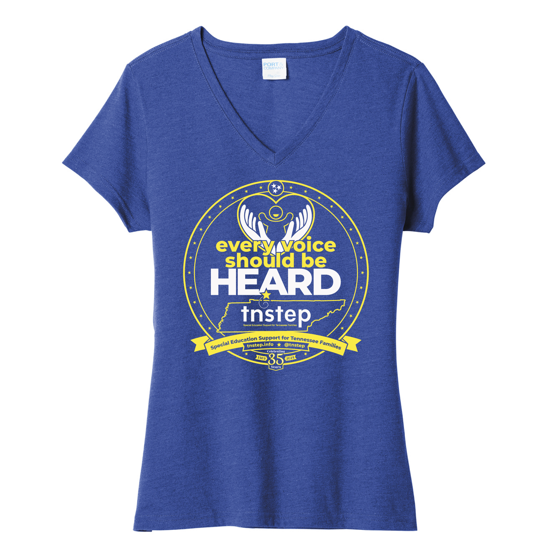 TNSTEP – Heather Blue Ladies V-Neck T-Shirt